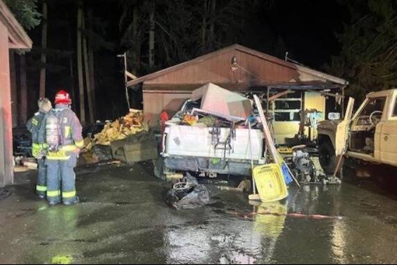 An unidentified male was flown to Harborview Medical Center on Thursday night due to injuries sustained in a garage fire west of Sequim.