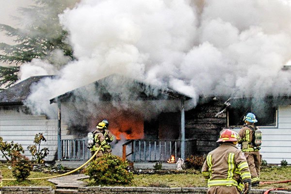 Flames and smoke were visible from the front porch, door and windows when firefighters arrived at 2:36 p.m.. Firefighters entered the house to begin putting out the fire, eventually cutting a hole in the roof and gutting the home’s mid-section.