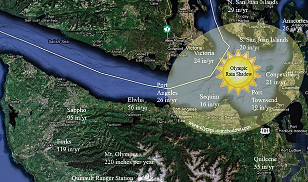 “But there’s also a little bit of black magic,” Britton said. Even when a front arrives from the west, or from another direction, it doesn’t drop as much precipitation in Sequim.