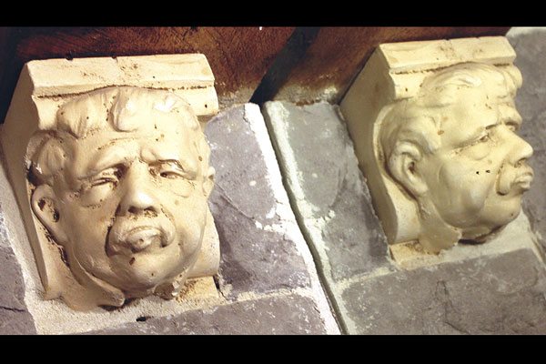 Two stairways lead up to the second floor, including a spiral staircase that fills the scaled purple turret that is one of the castle’s most notable exterior features. The turret’s interior is resplendent with shining stained glass, stained wood and fine fixtures.