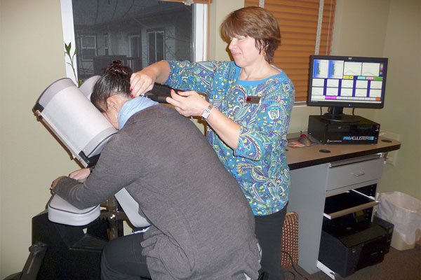 She eschews traditional chiropractic manual manipulation for modern technology in an all-in-one scanner/adjuster from Sigma Instruments.