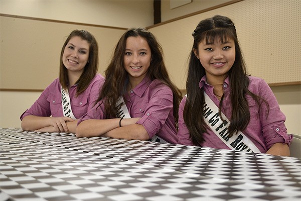 Sequim girls Hannah Fritz, Hannah Gauthun and Mia Steben vie to become the fair’s next queen at 2 p.m. Saturday, March 29, in the Clallam County Fairgrounds Expo Building, 1608 W. 16th St., Port Angeles.