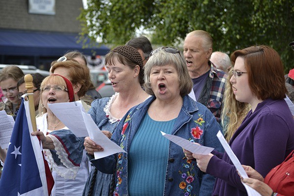 Karla Messerschmidt Morgan organized the event in conjunction with the Smithsonian’s “Raise It Up!” event after a Port Angeles event was cancelled. “I’m thrilled,” she said afterward about the turnout of about 30 people. “Anytime you have a spontaneous event and take a stand together, what a gift.”