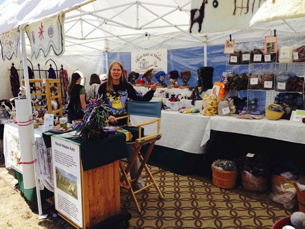 Now her product line includes everything in fiber from washed pieces of sheep, alpaca, llama and angora goat fleece in all stages of processing, including the end result of hand-spun yarn and had felted items.