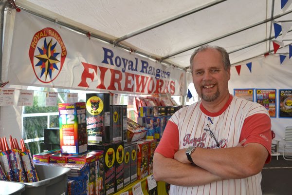 David Westman stands inside the Royal Rangers Fireworks stand.