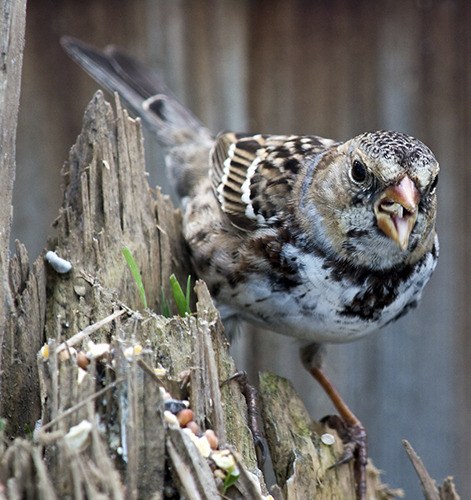 At this time, a unique clique of sparrows was coming to a feeder in Dungeness: a Harris’, a white-throated, white-crowned and golden-crowned. These four species make up the complex of Zonotrichia sparrows found in North America. To have them all showing up at one feeder was truly a birder’s dream.