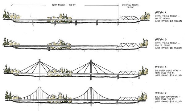 According to the preliminary design, the damaged 585-foot trestle would be replaced with a pedestrian bridge of about 750 feet.
