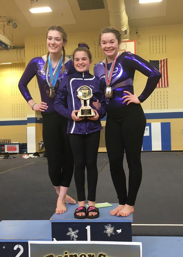 “This is a big achievement with only three girls,” coach Janet Urfer said. “It is difficult for small teams to do well in the team competition since scores are calculated using the top three scores in each event regardless of the number of competitors on a team.”