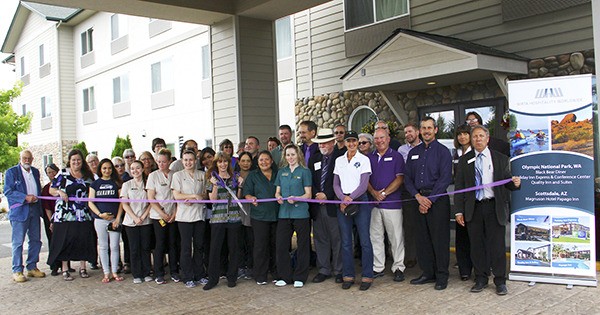 Sequim’s own Quality Inn & Suites staff and friends celebrate a whole new inn on July 20 with a Sequim-Dungeness Valley Chamber of Commerce ribbon cutting and an after-hours event.