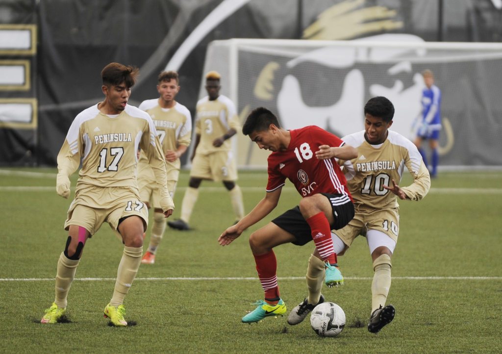 Peninsula jumped to a 2-0 lead in the first half, getting a header from Jason Ramos off a free kick at 29 minutes and a penalty kick score from Juan Carrillo just before halftime.