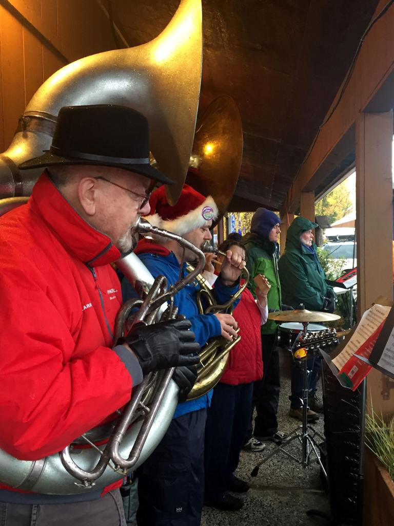 Music filled the damp air in Downtown Sequim by the Sequim City Band, Sequim High Jazz Band, Joyful Noise students, Sequim High “Softball Singers,” Jonathan Simonson, and The Olympic Men’s Chorus.