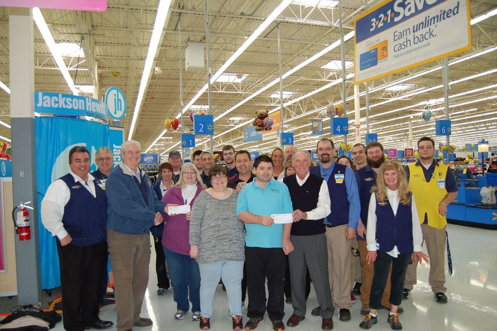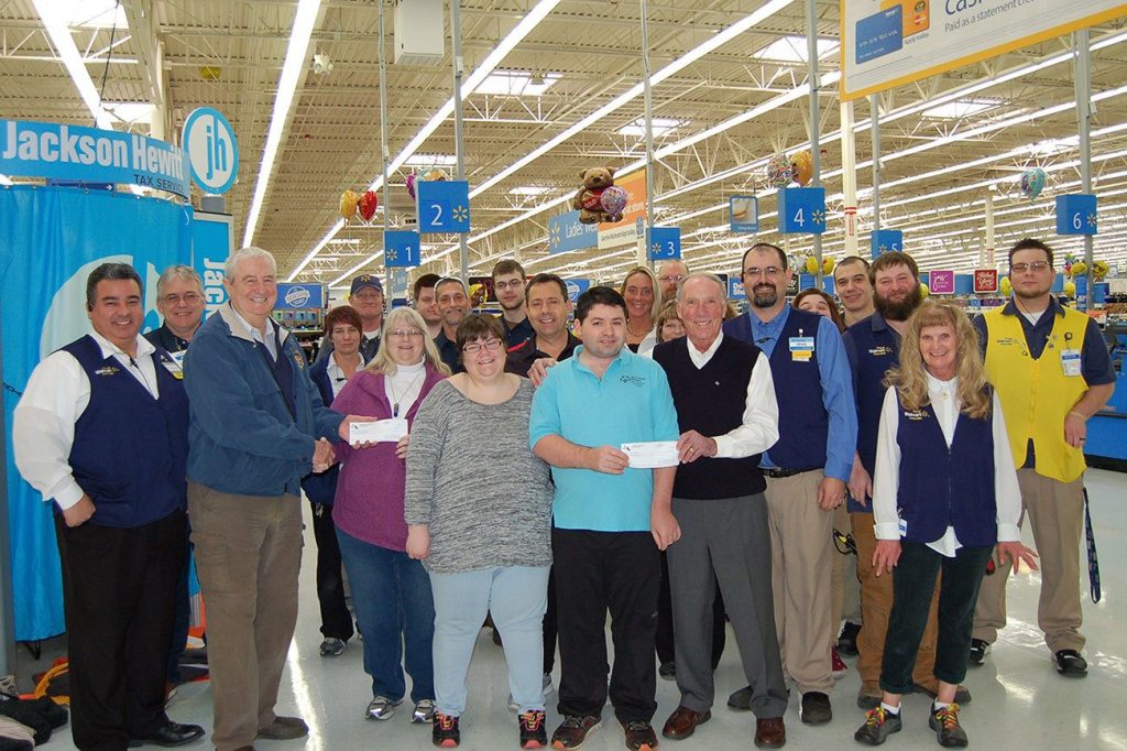The Saint Joseph’s Catholic parish Knights of Columbus chapter stood with Walmart employees as they presented proceeds from their annual “Tootsie Roll” fundraiser to representatives of Clallam Mosaic and Clallam County Orcas.
