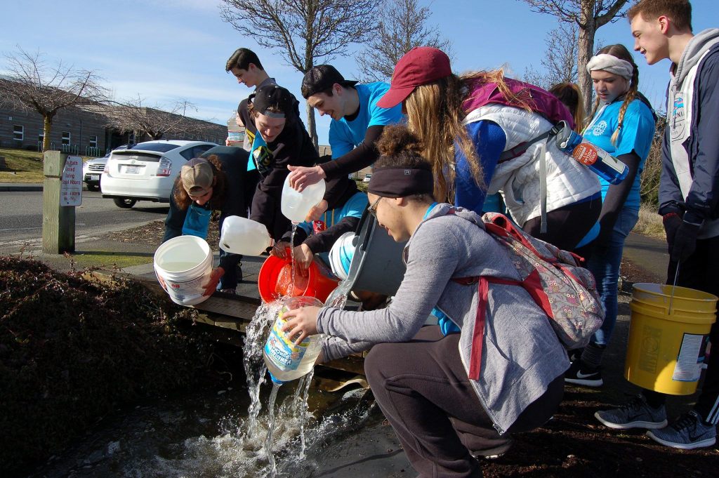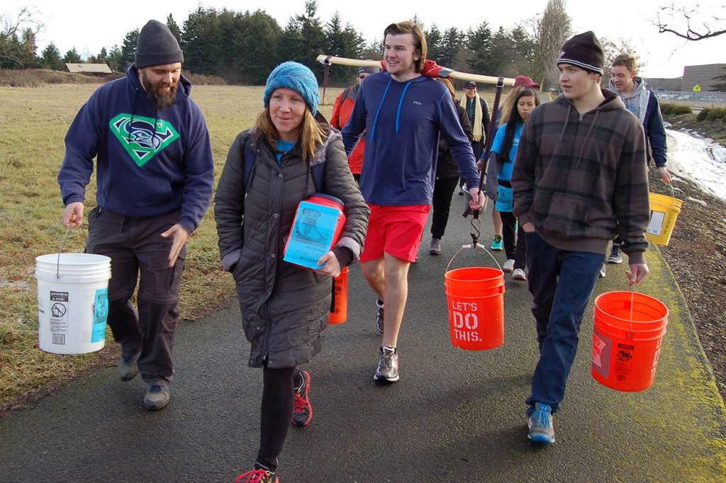 Sequim High School students and faculty walked 4.3 miles carrying gallons of water from Hendrickson Road to the Dungeness River and back to fundraise and raise awareness for women in Africa that walk numerous hours daily to gather water.