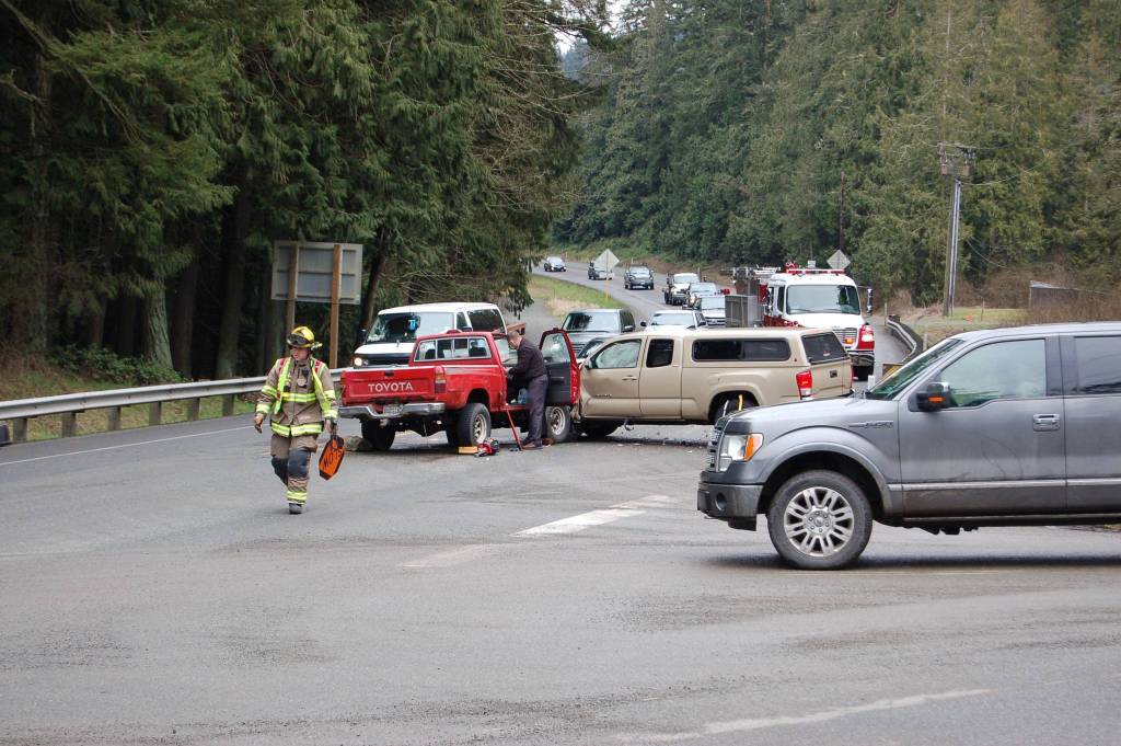Emergency responders from Clallam County Fire District 3 and Washington State Patrol worked quickly with Evergreen Towing to move the vehicles from the eastbound lane and away from traffic. Firefighters and Washington State Patrol directed traffic east and westbound while emergency crews worked on moving the vehicles.