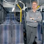 The commuter buses have reclining seats, overhead storage space, reading lights, two wheelchair ties and room for three bicycles.