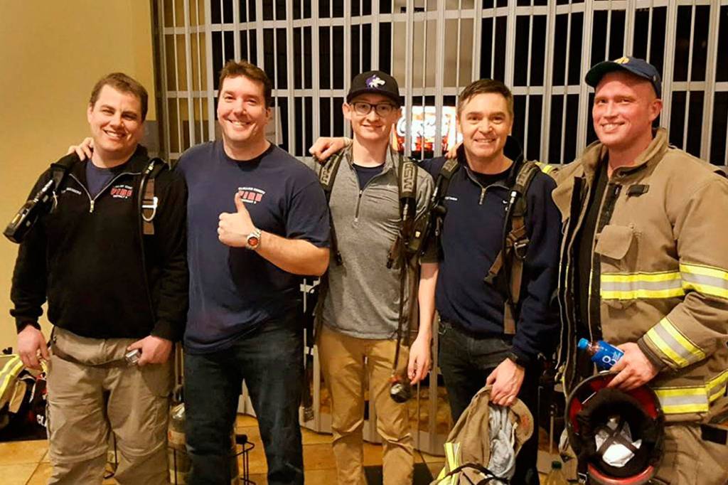 Capt. Bryan Swanberg, firefighter/paramedic Neil Borggard, firefighter/EMT Lee Forderer, firefighter/paramedic Stefanie Anderson, volunteer firefighter Lee Oman and Lt. Chad Cate participated in this year’s event. Forderer’s son Conner also helped firefighters switch out bottles at the 40th floor.