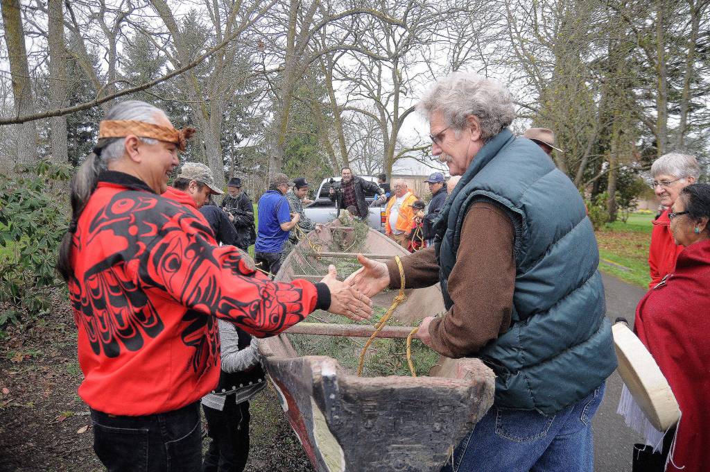 Riebe said there will be an even bigger ceremony in Forks after the canoe is restored.