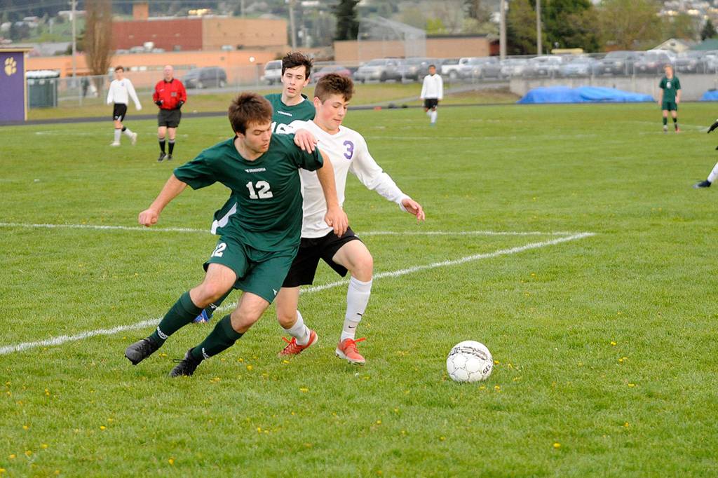 Robert Beeson added to the Wolves’ lead a minute later, pushing through a mass of players in the middle to fire off a shot from the top of the 18-yard goal box for a 3-0 Sequim lead.