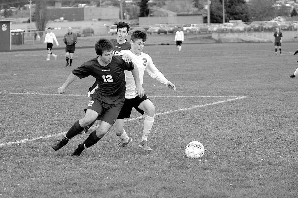 The Sequim senior made a hard charge up the left side of the field, keeping possession for more than 50 yards and avoiding a tackle by Bailey to score his second goal to the right of a diving Delatorre.