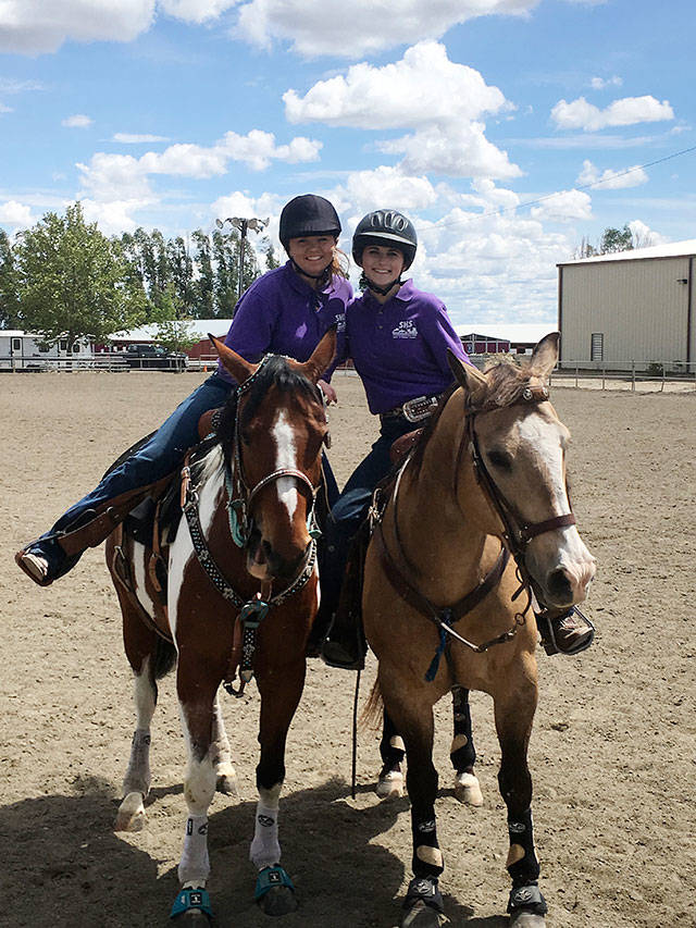 Sequim High seniors Sydney Balkan and Amy Tucker teamed up to win gold in Cattle Sorting.