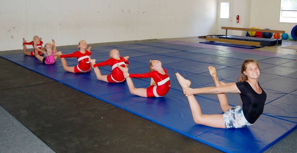 Flexibility is a key skill coach and founder of the Sequim Acrobatics program Alicia Laxson focuses on with her young students.