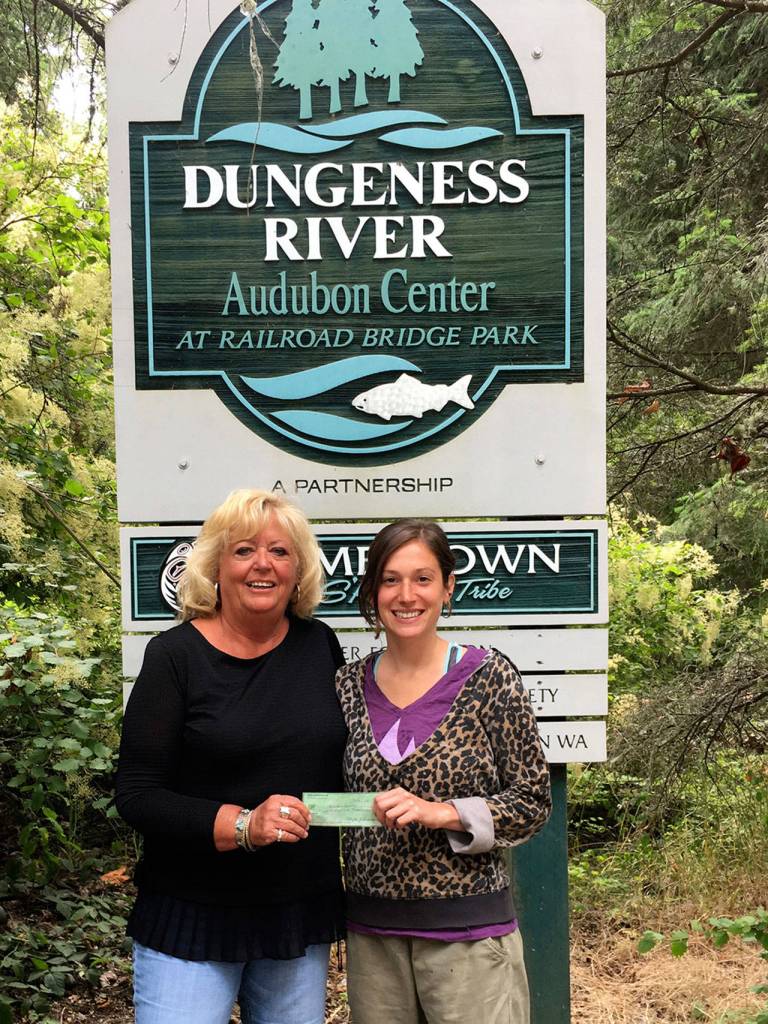 The Newcomers’ Club recently donated $200 to the Dungeness River Audubon Center in appreciation of its commitment to provide educational and environmental programs for adults and children. Jenna Ziogas, right, education and volunteer coordinator of the center, accepts the donation from Cathy Schau, Newcomers’ Club president. Submitted photo
