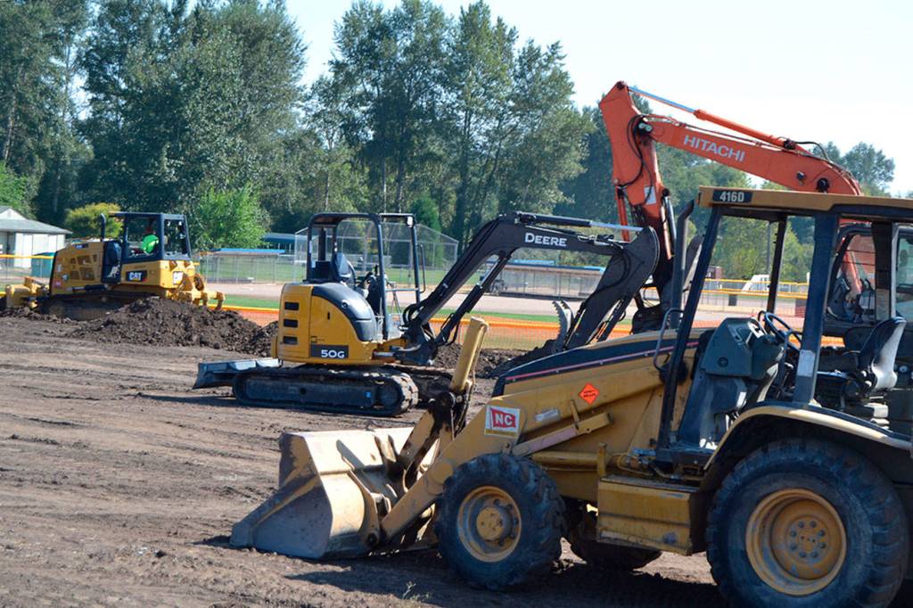 Work is underway to realign the entrance to Carrie Blake Park. Crews with Northern Land Development, LLC began leveling the BMX track last week to make room for the park’s new entrance between the Sequim Skate Park and Trinity United Methodist Church.
