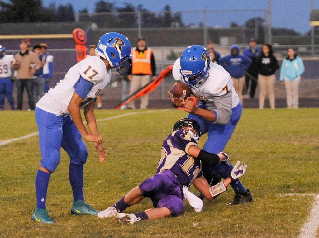 And run the Knights did, to the tune of 361 yards on the ground. Led by senior halfback Semaj Cook, the Knights racked up 21 first downs and out-gained Sequim overall 471-168 in total yardage.