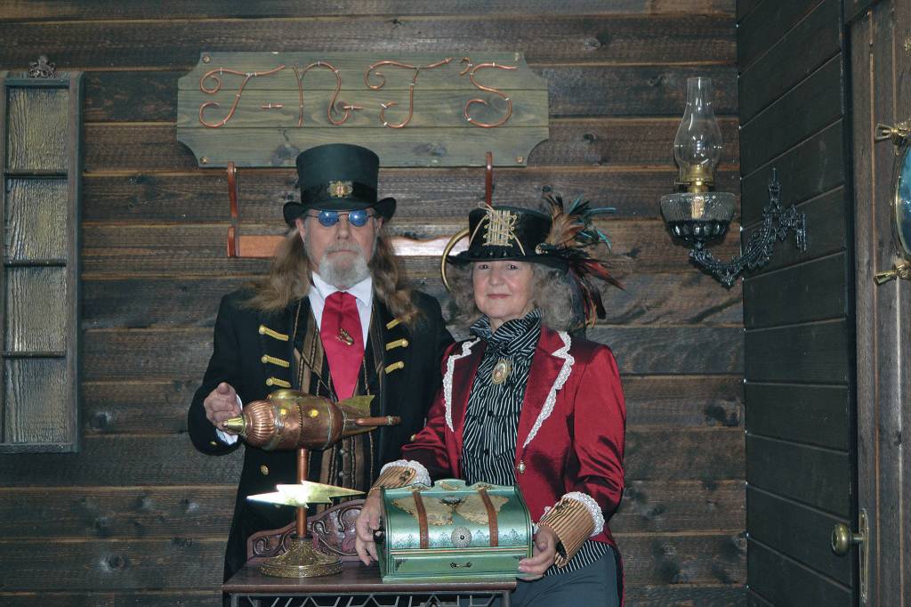Tim & Toy Bullion talk about “Transformation: From Junk to Steampunk Art” at the “Found Objects … Found Art” exhibit opening on Oct. 6 at the Sequim Civic Center. Submitted photo