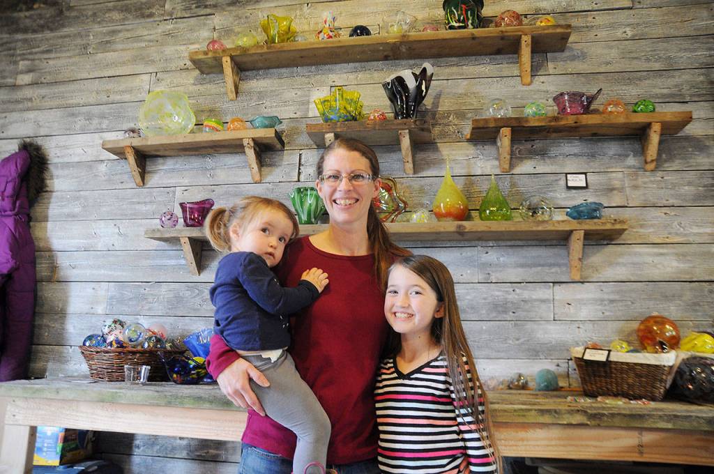 About three weeks ago Schmidlkofer opened Molten Momma’s Hot Shop, a glassblowing shop on her family’s property, where she and husband David raise five children (and goats and chickens, etc.).