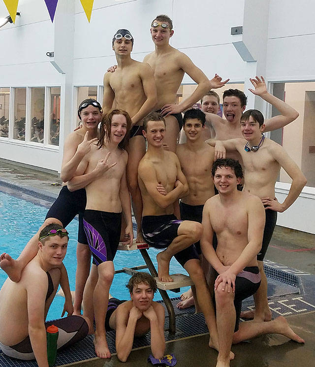 Sequim High’s boys swimming team capped off the Olympic League meet in Port Angeles on Jan. 30 with what head coach Anita Benitez called an “emotional” final event, a school record-breaking 400 free relay.