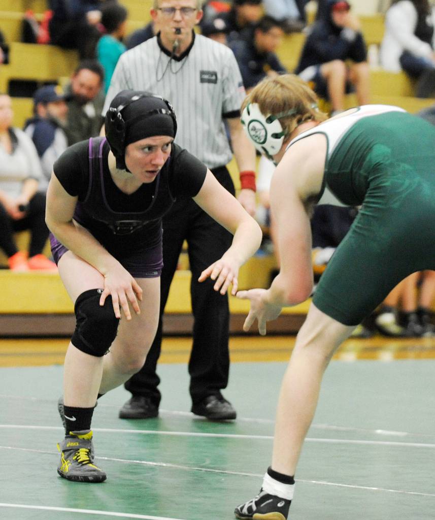 The Sequim High senior racked up three convincing pins on her way to the championship match of the girls’ 135-pound weight class at the MatClassic state tournament in Tacoma last weekend, where top-ranked Allison Blaine of Hudson’s Bay edged Pierson 4-2.