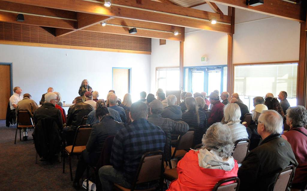 A crowd of about 75 community members detailed a number of concerns on March 16 they had with the port’s consideration of an offer for the publicly owned, 300-slip facility east of Sequim from developer Ron Cole, owner of Buffalo River Holdings Inc., of Bend, Ore.
