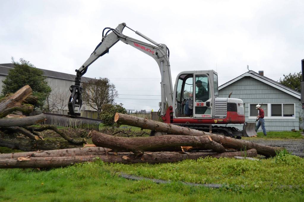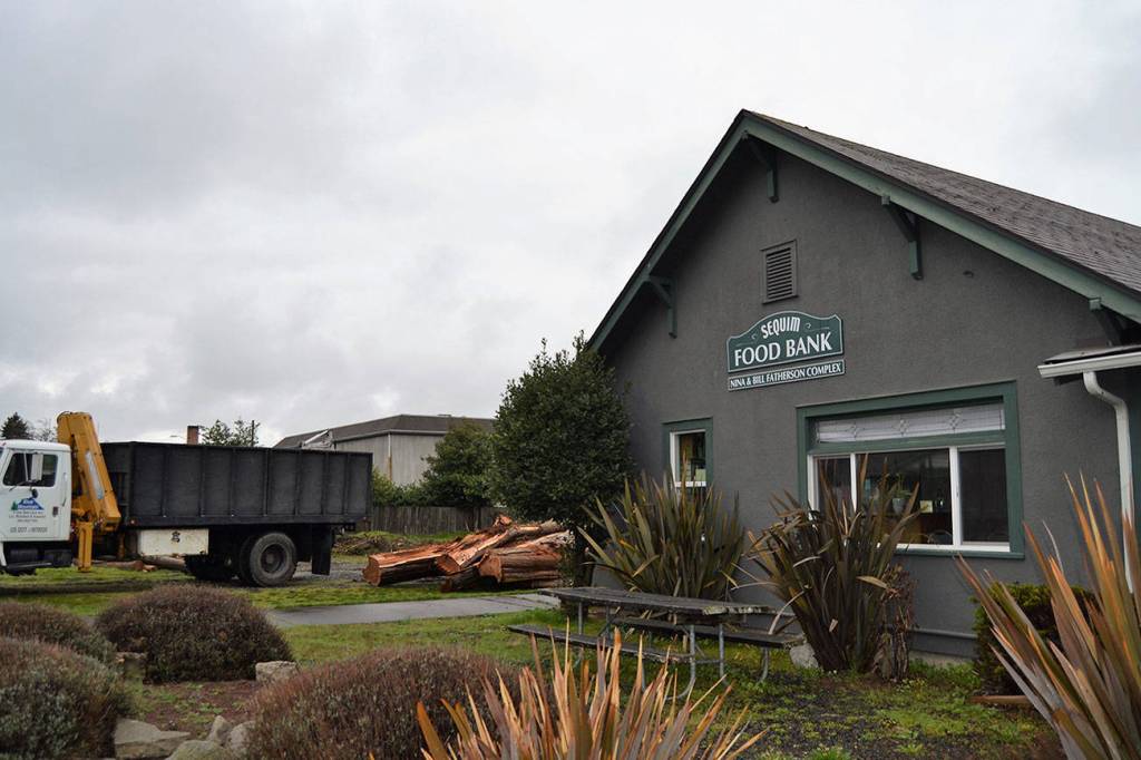 Last Friday, crews with Blue Mountain Tree Service, Inc., of Sequim removed several large trees to make way for parking at the food bank’s new property at 154 W. Alder St.