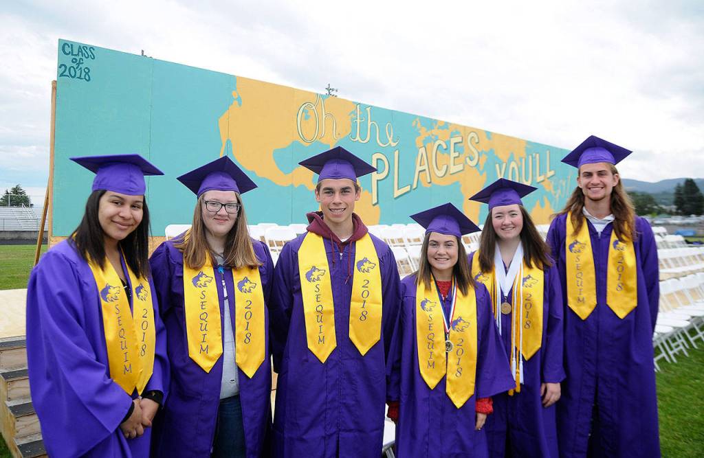 Alexis Moore, Teairra Tveit, Addie Berg, Julian Hutchison Blouin, Amanda Dodson and Liam Harris were among the crowd of about 190 students in Sequim High School’s Class of 2018 to receive diplomas on June 8.