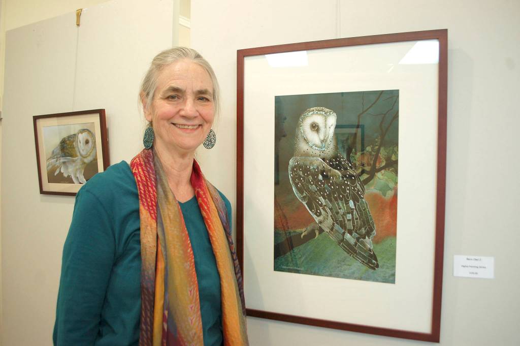 Her solo show at the Sequim Museum and Arts Center “Owls and Others” on exhibit through July 28 showcases her work combining traditional sketching and watercolor techniques with Photoshop where she adds layers to create a detailed and vibrant piece with hints of abstract elements.
