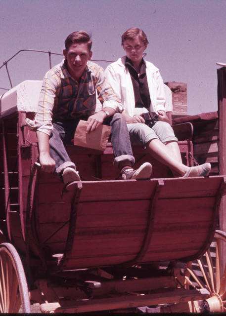 Ross Hamilton and Kathy Haney enjoy a childhood summer vacation in their youth; the photo is dated 1957. Six decades later, they married. Submitted photo
