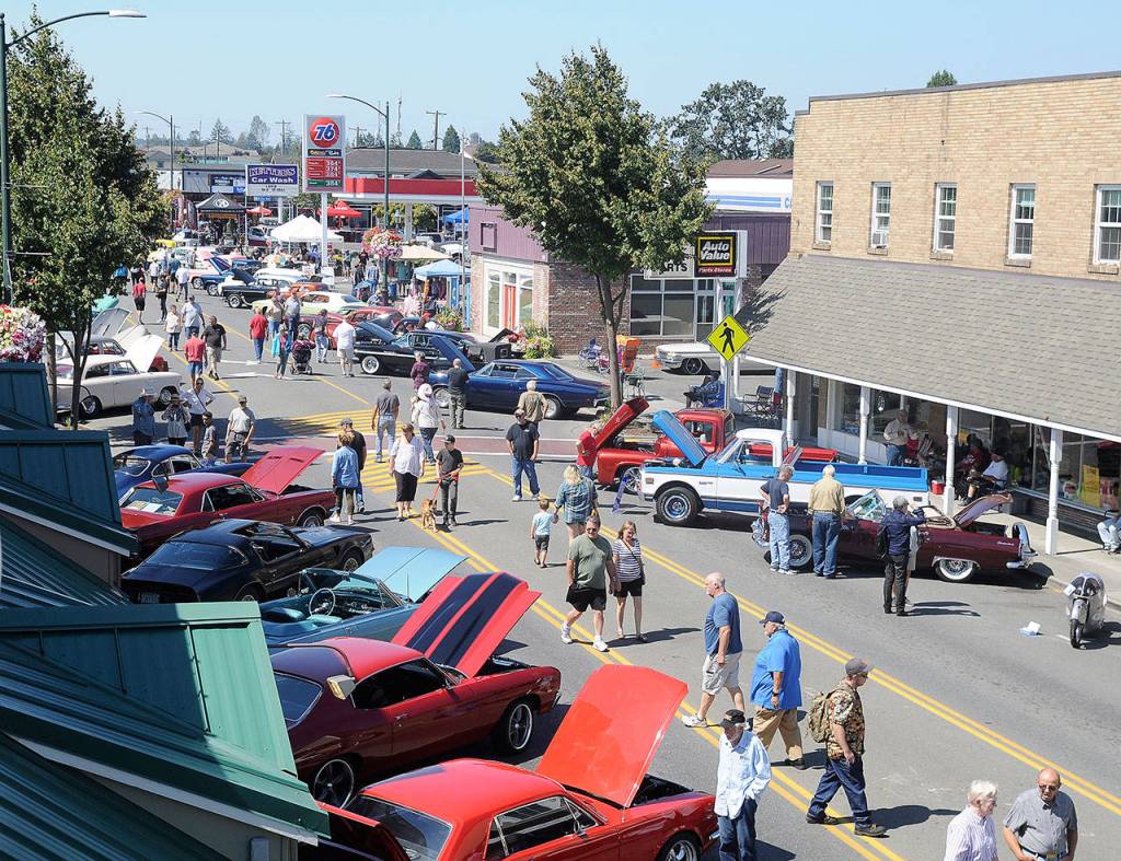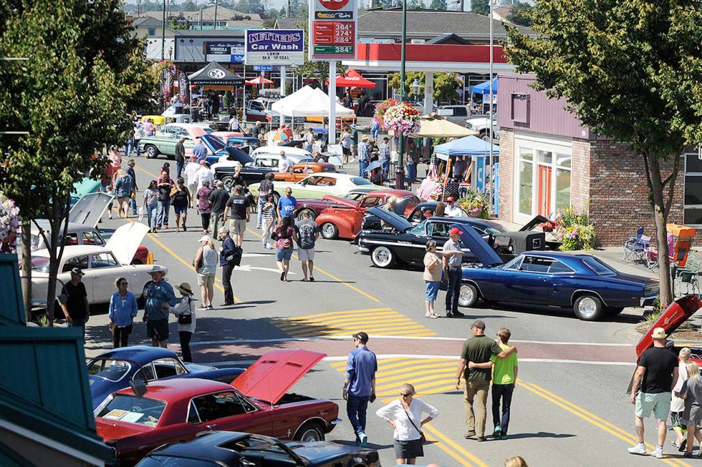 Community members peruse a variety of classic cars at the Sequim Prairie Nights event on Aug. 18.