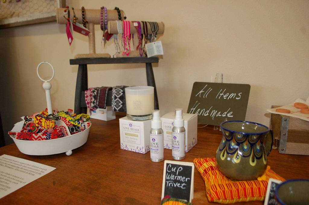Her storefront and online shop sell items such as jewelry, bags, home decor, baby shoes, men’s ties and bow-ties, candles and more to support ethical working conditions around the world.