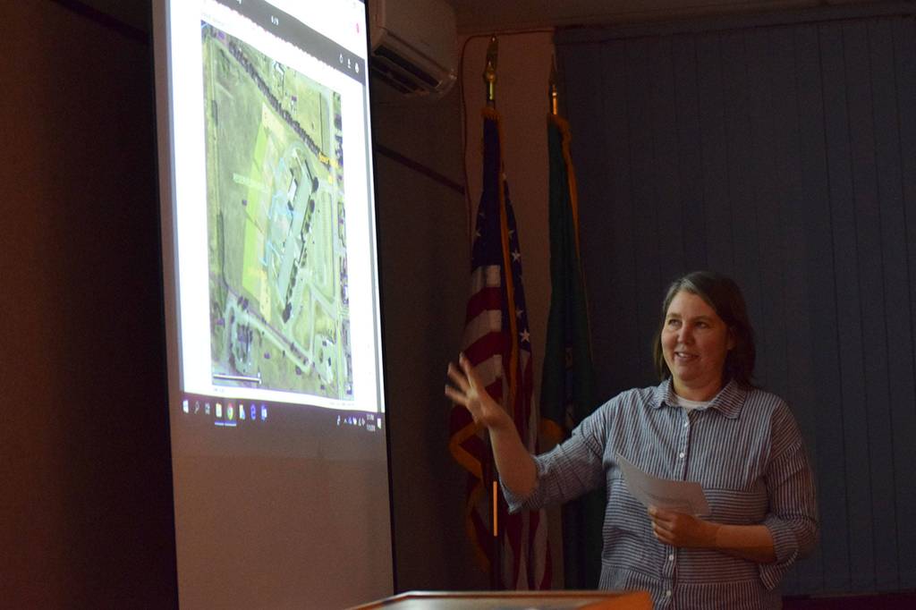 Meggan Uecker from Clallam County Public Works presented to the school board about the option of Greywolf Elementary School hooking up to the Carlsborg Sewer Project in a workshop meeting on Nov. 5.