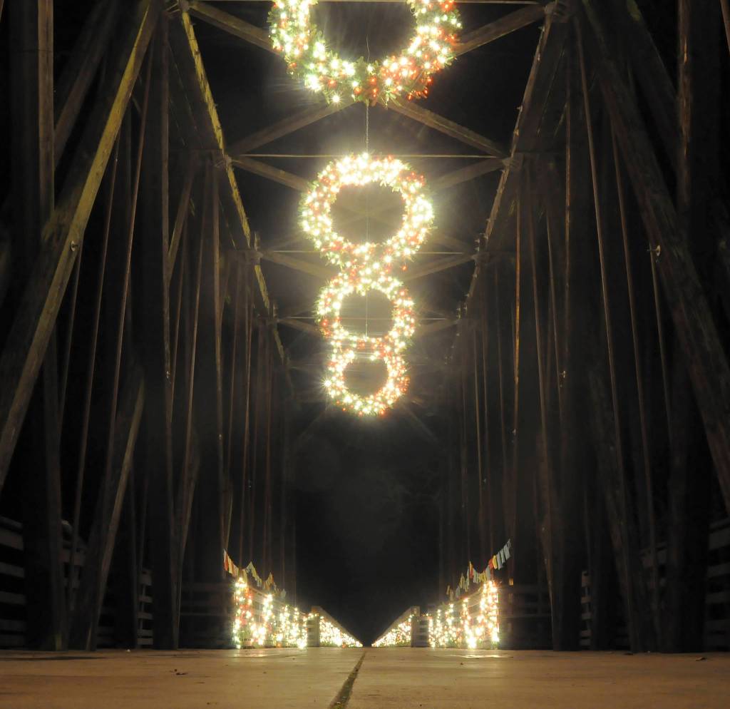 • Railroad Bridge Park off West Hendrickson Road has Christmas wreaths with lights hanging from the top of Railroad Bridge and the whole bridge is lined with garland and more lights; making for a romantic walk in the park.