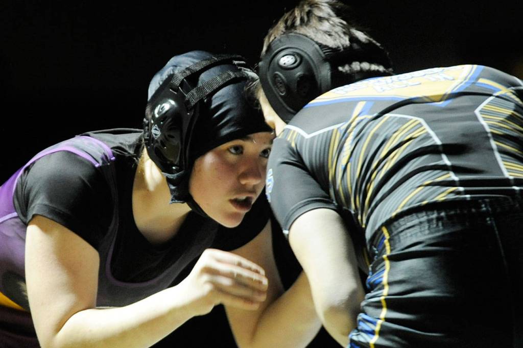At 130 pounds, Sequim’s Amara Sayer battled No. 1-ranked Holly Beaudoin of North Kitsap (according to Washington Wrestling Report), getting pinned just before the first period whistle.