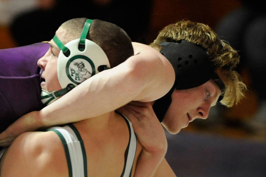In varsity matches, the Wolves’ conceded second-round pins at 138 pounds (Jakob Pyeatt, by PA’s Adam Borde), 145 pounds (Zach Koch, by Jackson Larson) and 170 pounds (Kenneth Wolfley, to Trevor Shumway), plus an injury forfeit at 182 pounds (Logan Laxson, who was behind 12-2 to Dom Timperio).