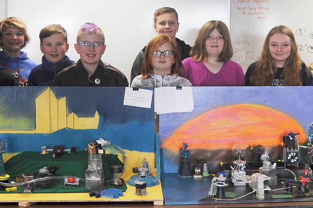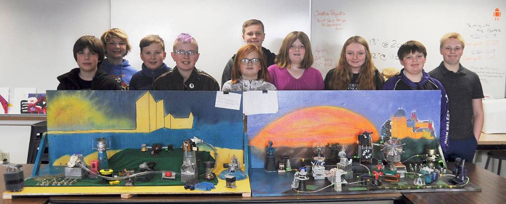 For the first time, Olympic Peninsula Academy students put two entries in the Future City Competition this year, with teams competing at the regional event at Shoreline Community College in January. Future City is a project-based learning program where students in sixth, seventh and eighth grades imagine, research, design and build cities of the future. OPA students started on their projects the first week of school and event through their winter break, focusing on the theme of building a resilient future city power grid able to withstand a major earthquake. OPA earned the regional award for Best Land Surveying Practices, an honor sponsored by the National Council of Examiners for Engineering and Surveying (NCEES). Pictured, from left, are Owen Tjemsland, Ari Skov, Nick Parrish, Jorel Bessey, Zowie Abken, Landon Elliott, Kaia McCarter, Angelina Himmelberger, Zak Bell and Mirek Skov. Not pictured are Gabe Jensen and Ethan Engeset. Sequim Gazette photo by Michael Dashiell