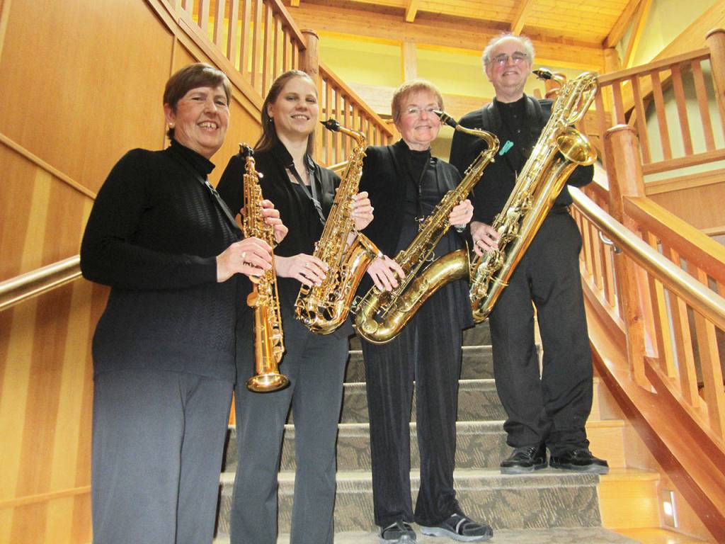 The Saxologists — soprano Debbi Soderstrom, alto Julie Gonzales, tenor Mary Lowry and baritone Mark Condran — are set to take the Olympic Theatre Arts Gathering Hall stage on May 3. Submitted photo