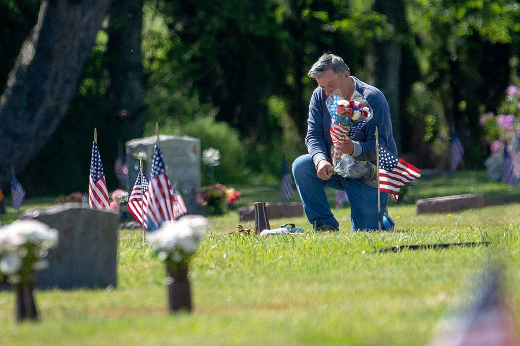 Jim Black visits the grave of his late wife Mary Black, who served in the U.S. Navy, on Memorial Day. Photo by Jesse Major/Peninsula Daily News