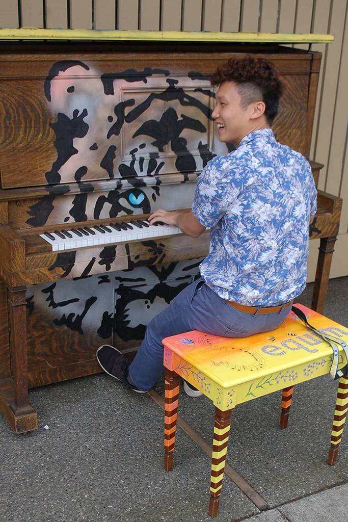 A musical doctorate student at the University of Oregon and a former Peninsula College student, Sin enjoys taking time during his day when he’s in town to visit one of the pianos scattered around downtown Sequim in the summer to sit down and play for awhile.