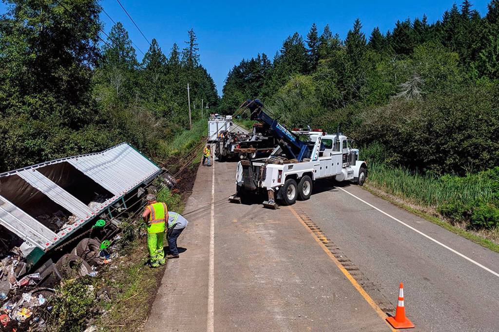 The 50-foot trailer contained garbage, and some of the load spilled onto the road, the State Patrol said.