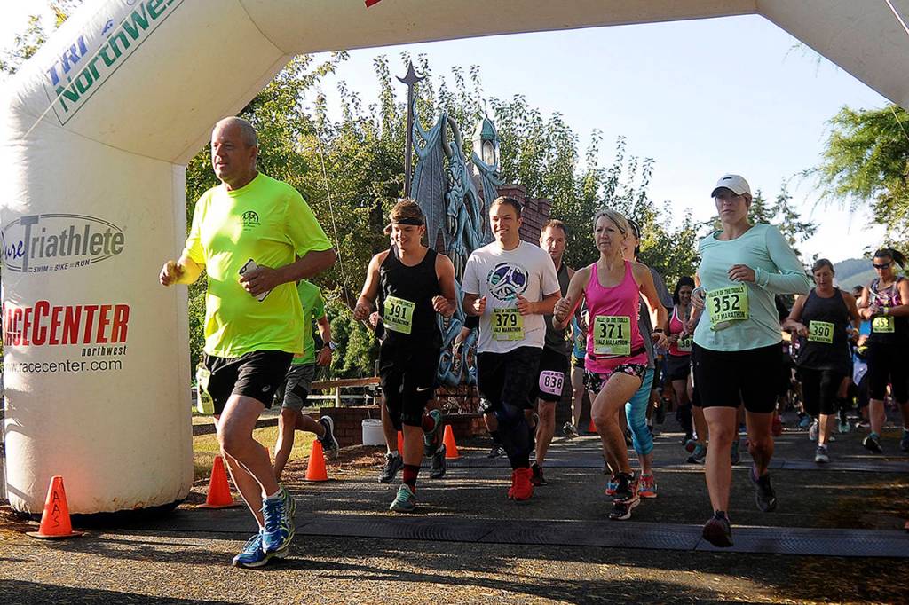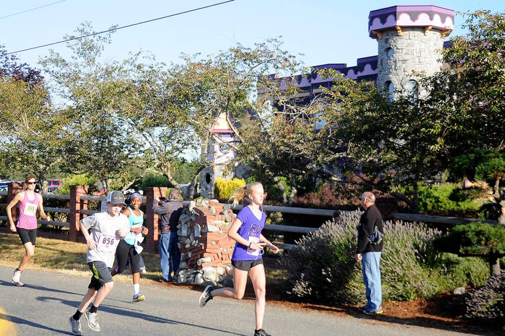 The unique location for the event at Troll Haven makes for some unique scenery, with a combination of the carefully-tended grounds and the delightful thematic statues, carvings and other artisitic touches that give the farm its name. Runners can also enjoy gorgeous views of Discovery Bay.