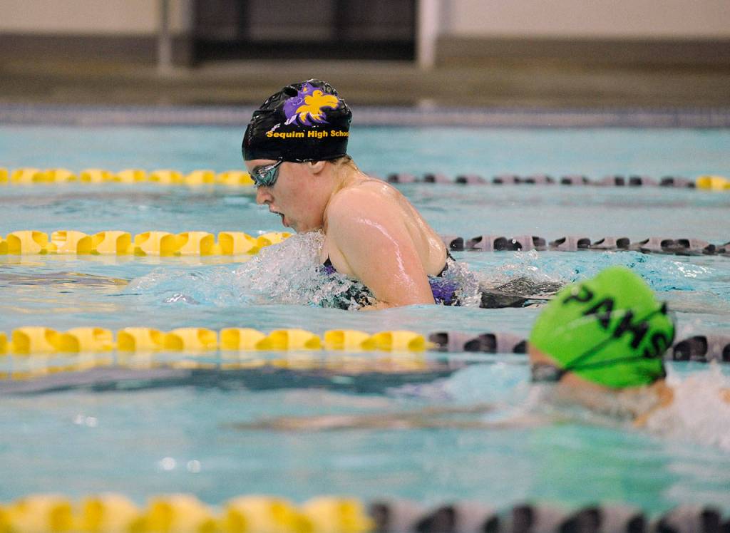 The Sequim Girls 200 medley relay team of Swanson, Sundin, Francesca Bargis and Petra Bernsten took first with a district meet-qualifying time of 2:05.03.